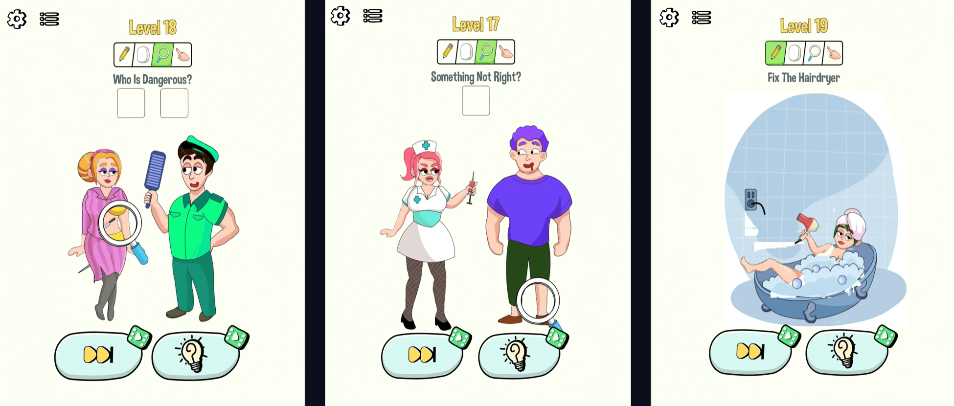 Brain Games : Erase Story & Dop : is an addictive tricky puzzle game with a series of tricky brain teasers and different riddles testing challenge your mind Each level requires you to think from different directions and combine creativity to find solutions. Not only that, there are countless humorous scenes in Delete one part, bringing you endless laughs and relaxing moments Do you think your brain is smart enough to solve all these tricky, crazy challenge puzzles? Your brain will be challenged by different types of IQ puzzles such as math, society, geography, history, or even love,...But the answer is not simple as an answer. You think the quiz is easy, it’s not. You think the brain puzzles are so difficult. “How can I solve it?”! But the answer is extremely simple. Don’t let your mind be cheated! Think of it as simply as possible. Challenge your attention and and have fun with funny tricky puzzles! Download and play Puzzle Games!