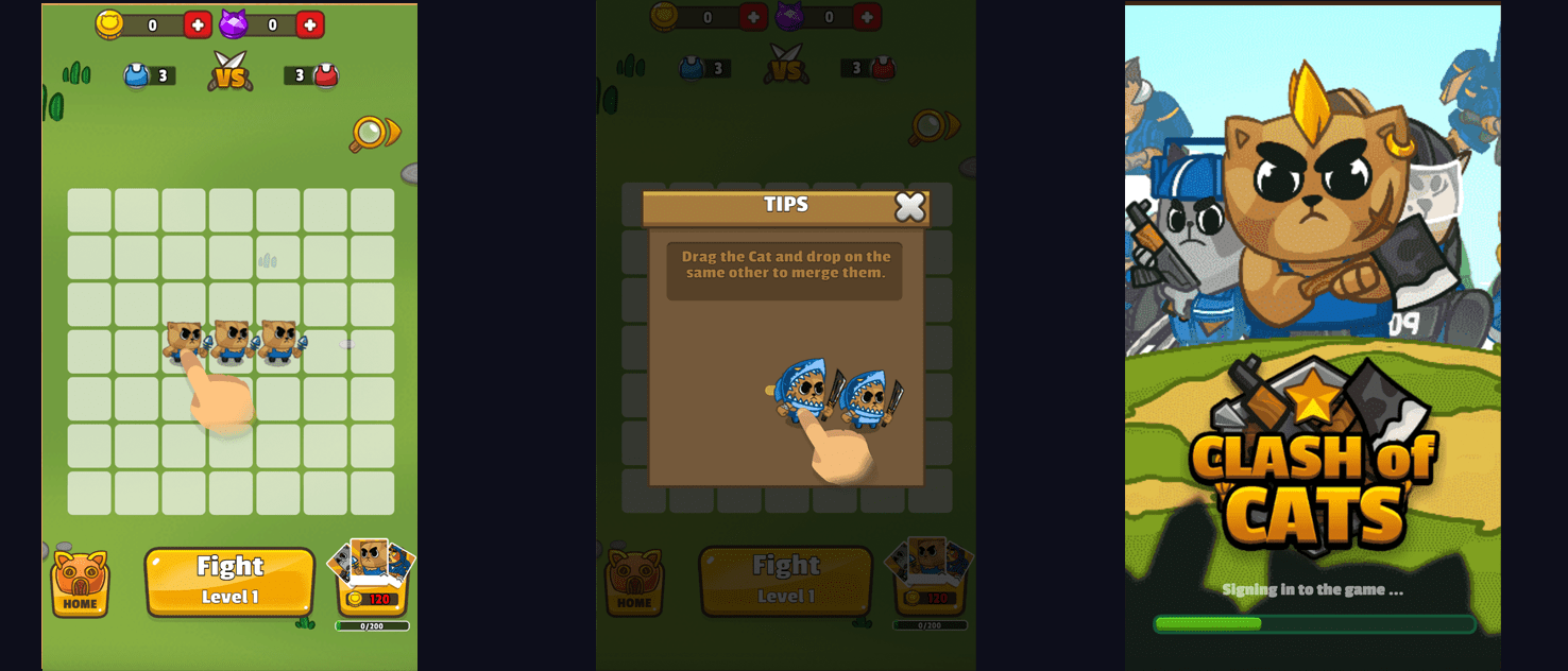 Clash of Cats - Battle Arena is latest fight game of kitties’ army. Face to hundreds of battles and collect various kinds of adorable cat army. Command your Cats with simple controls in a battle in the intense war field. No sign up or long process to make your own Cat Army, which will do battle with all other cats. Just merge cat with cat and start car fight. It is very easy to play and win the game, Just tap on the Cat you want to fight for you and move forward. Start using axe to blast bodies getting too close to your enemies. Have mind teasing weird enemies with the right Cat squad and take down the enemy base. It has a super simple leveling system. Clear level to get power and items to level up the Cats to fight. Unlock new items and new levels. Have unlimited with this amazing cat battle game. Merge cats like cat tycoon game Collect glorious treasures while you take over the world. Form a great cat army by recruit dozens of rare and exotic Cats and enjoy battle cats everywhere wining for you. Hundreds of levels and legendry challenges to make you awesome.
