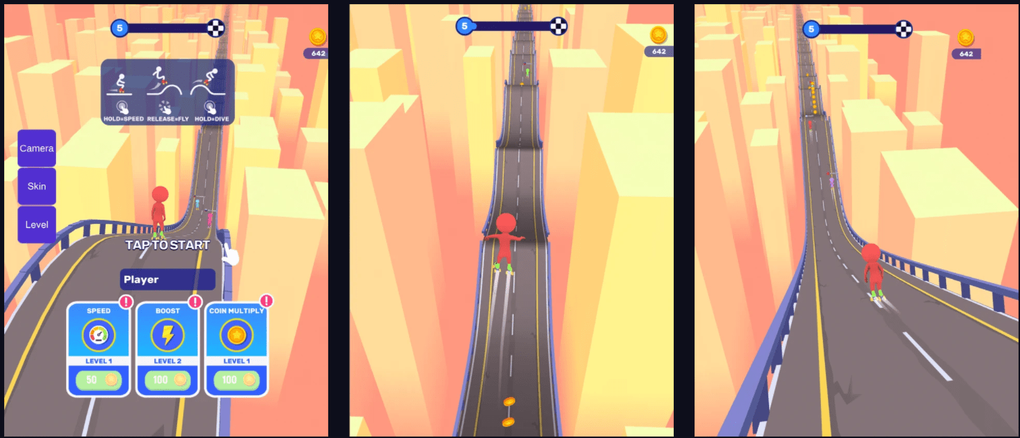 It may look easy but it can be really hard to master.... In this game, you have to pay special attention to the Obstacle, you have to swipe left or right accordingly the placing of obstacles. To increase your score and get more coin just swipe left or right to control your legs.. get your favourite character with this game and start play