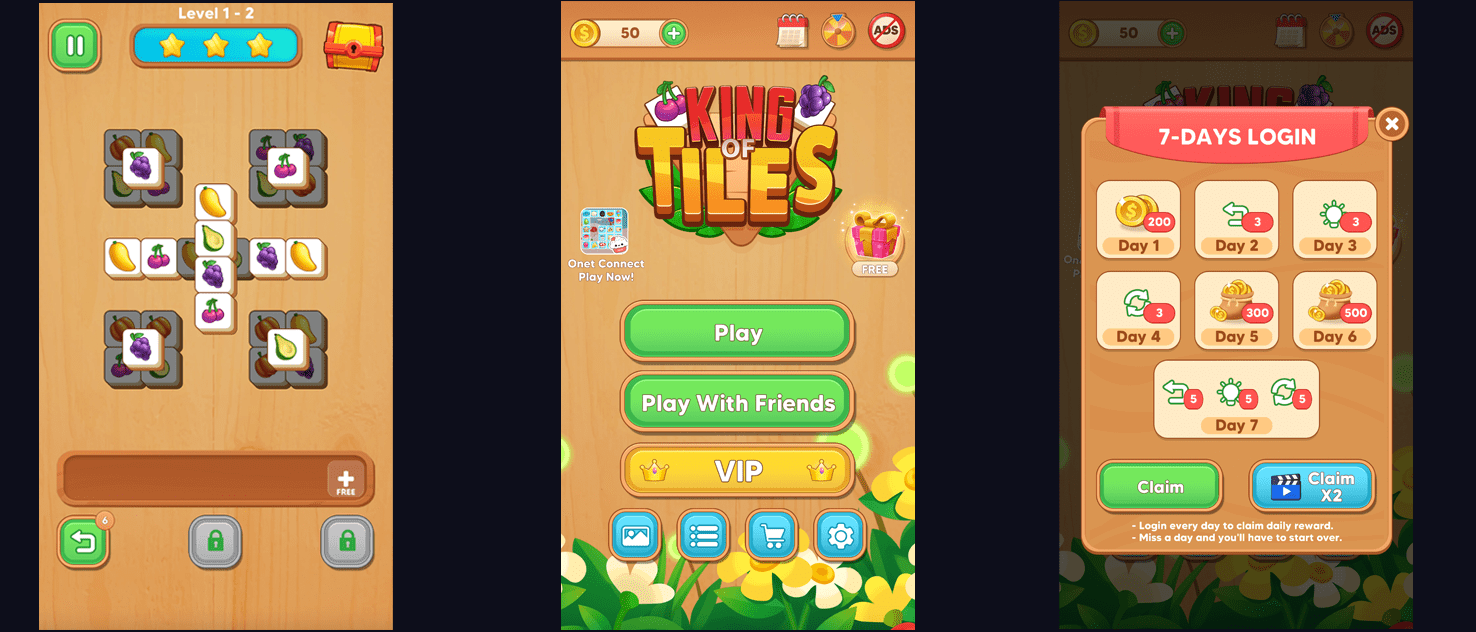 Who will be the next King of Tiles – Triple Match Tile Puzzle winner? Join in to a marvelous journey of classic mahjong tiles themed pair matching game. Whether you are dying of boredom in your free time or you need a new tile sorting games activity to keep sane, this spectacular tile matching game is here for you. Featuring tons of cool daily match tiles rewards and a number of cool new challenges to play every day, this tile match 3 game will offer you simple, engaging and rewarding durations of endless fun. Experience the best of match puzzle games with King of Tiles!